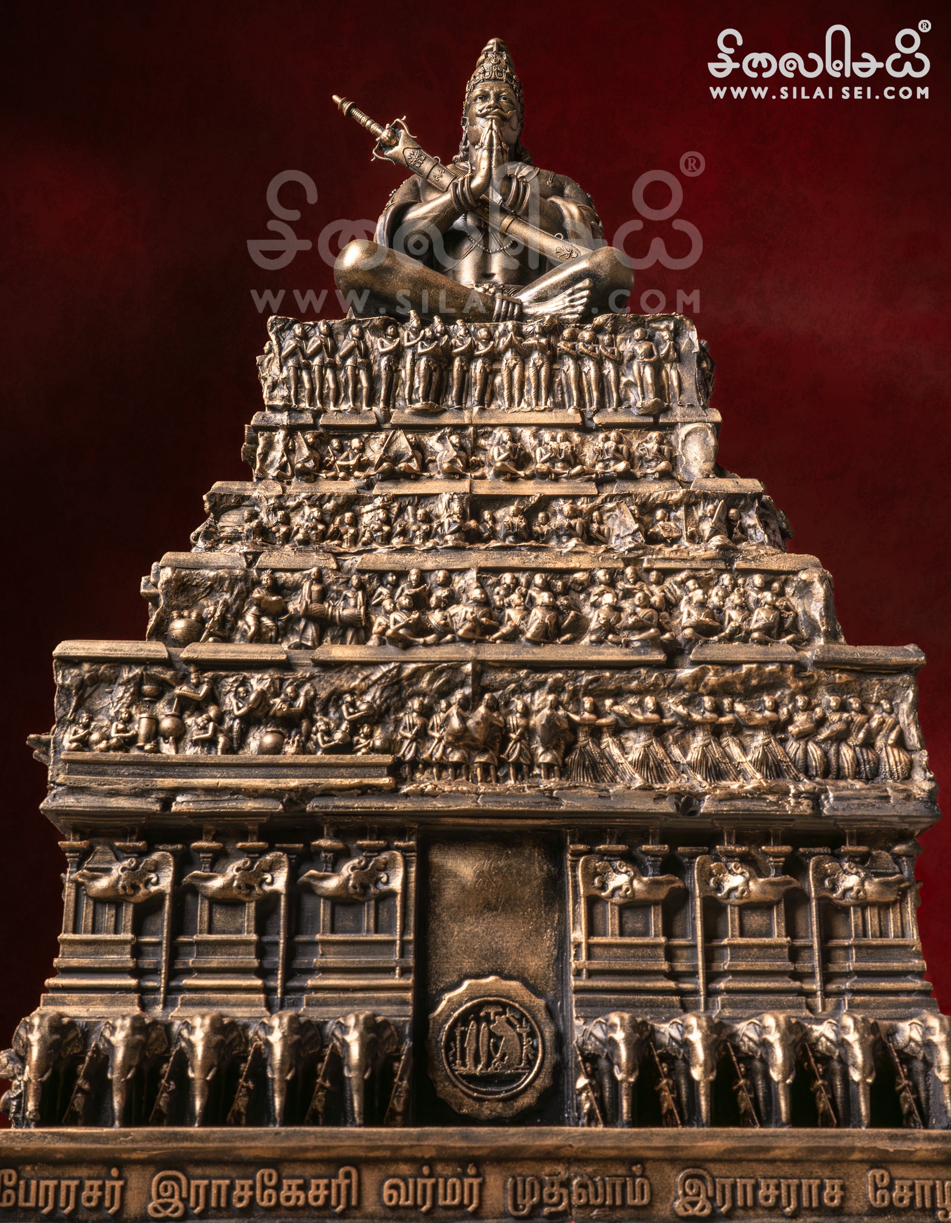This monumental artwork features over 338 individual sculptures intricately composed within a single creation, centered around the majestic Raja Raja Chola, known as Keralanthagan. Every figure, every gesture, and every ornament has been carefully studied and sculpted to echo the spirit of the Chola dynasty’s artistic excellence.